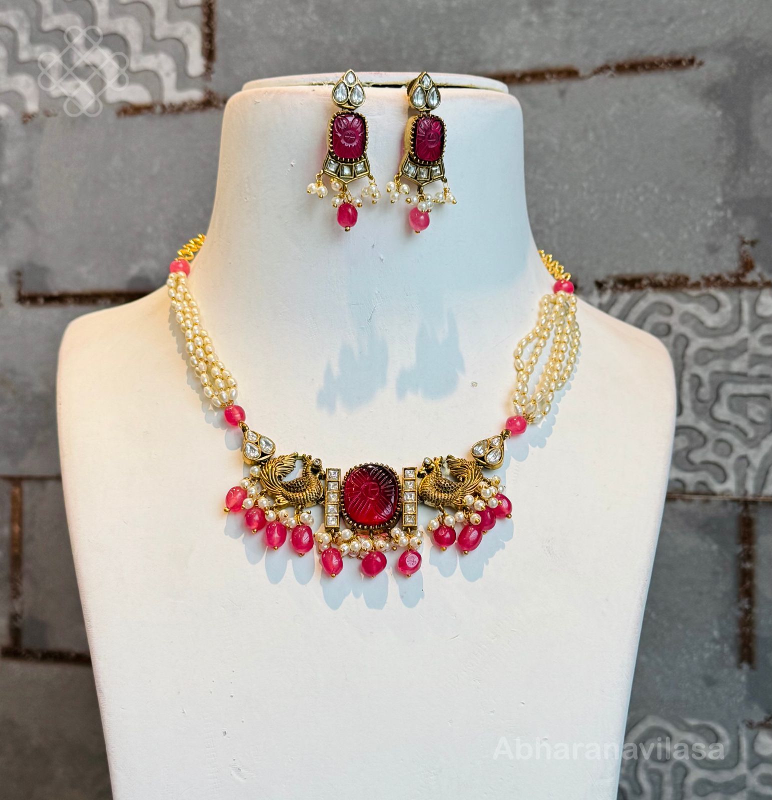 Beautiful choker with matching earrings to pair with both traditional and indo western for all occassion